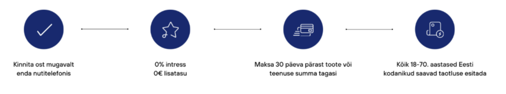 ESTO Maksa hiljem on uus viis ostude eest tasumiseks. Ostusumma jääb sulle kasutada, maksma pead alles 30 päeva jooksul. Saa täpselt, mida vajad ilma intressi, lisatasu ja sissemakseta.