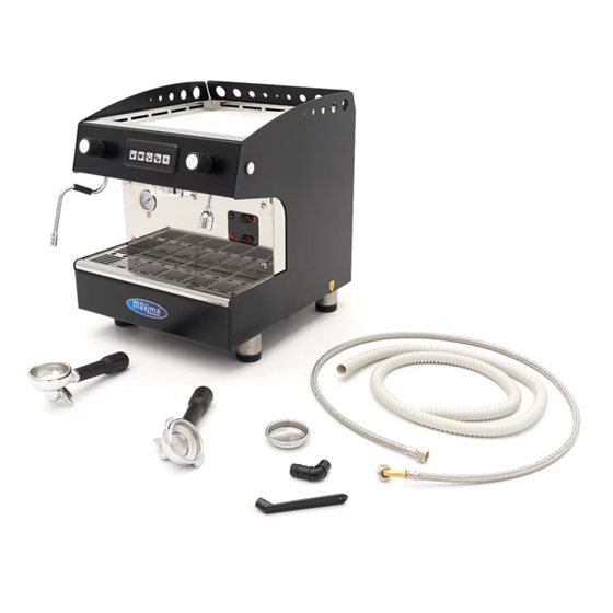 Kohvimasin on varustatud tugeva ühekordse grupi, pihusti ja portafiltriga.