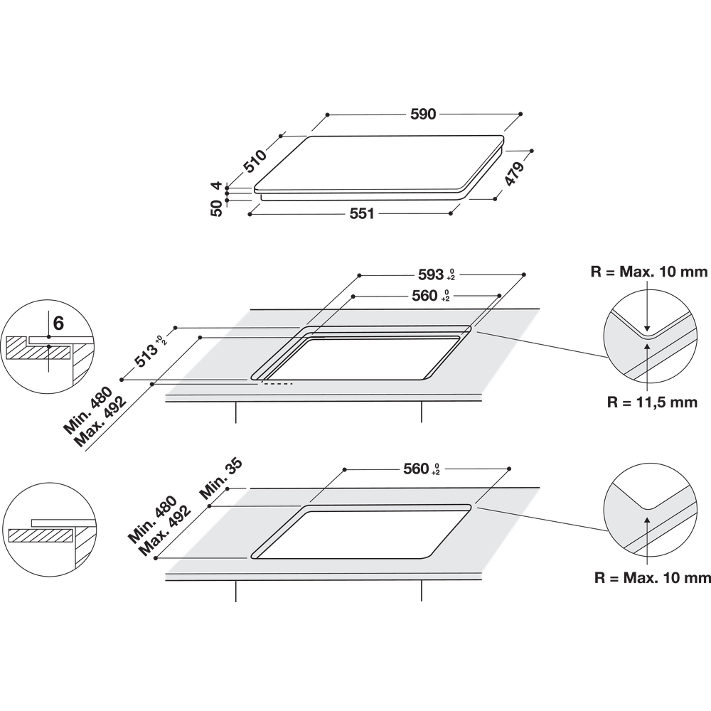 Tööpinna sisse uputatav |