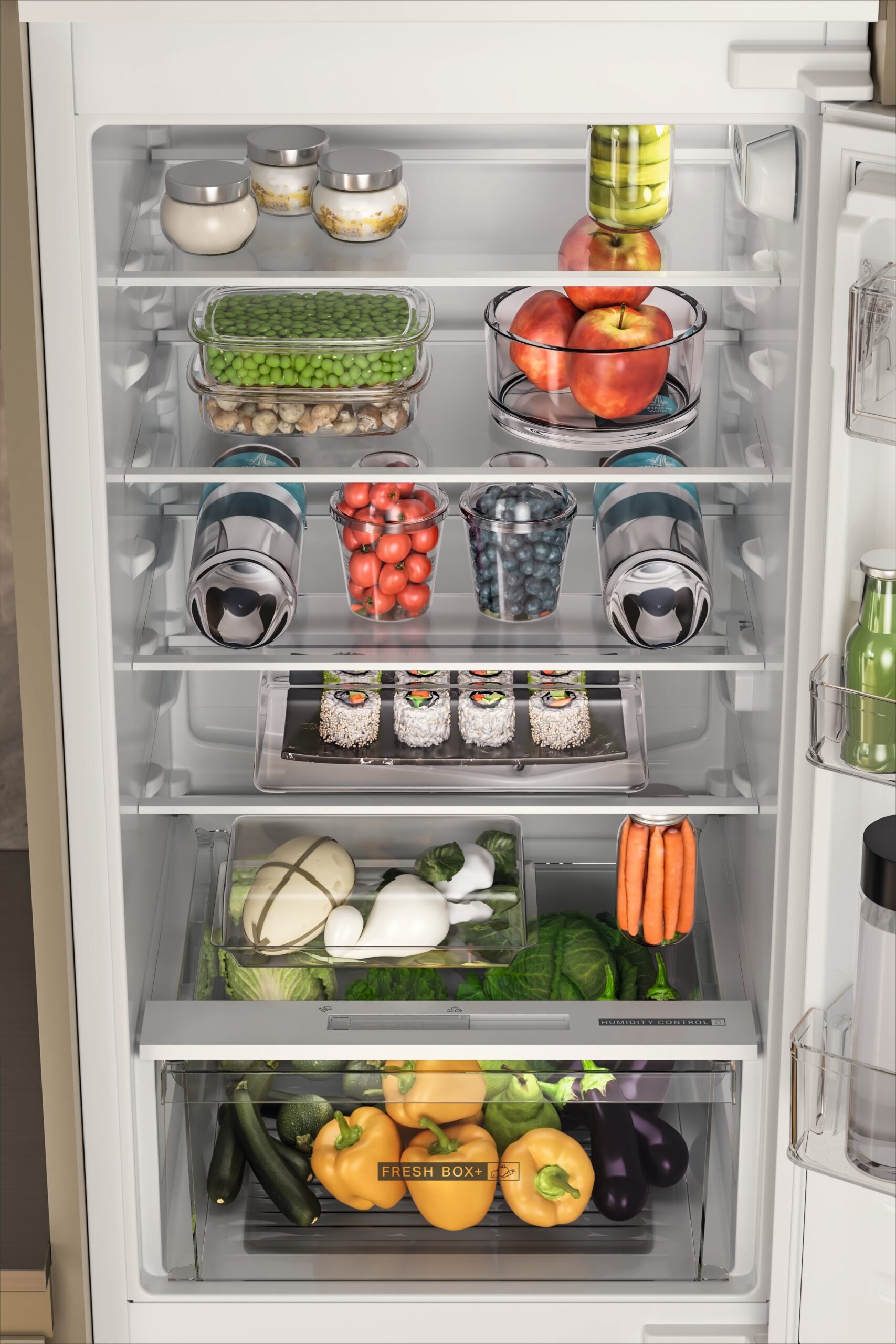 Fresh Box+ niiskuskontrolliga sahtel võimaldab hoida puu- ja köögiviljad värsked kuni 15 päeva.