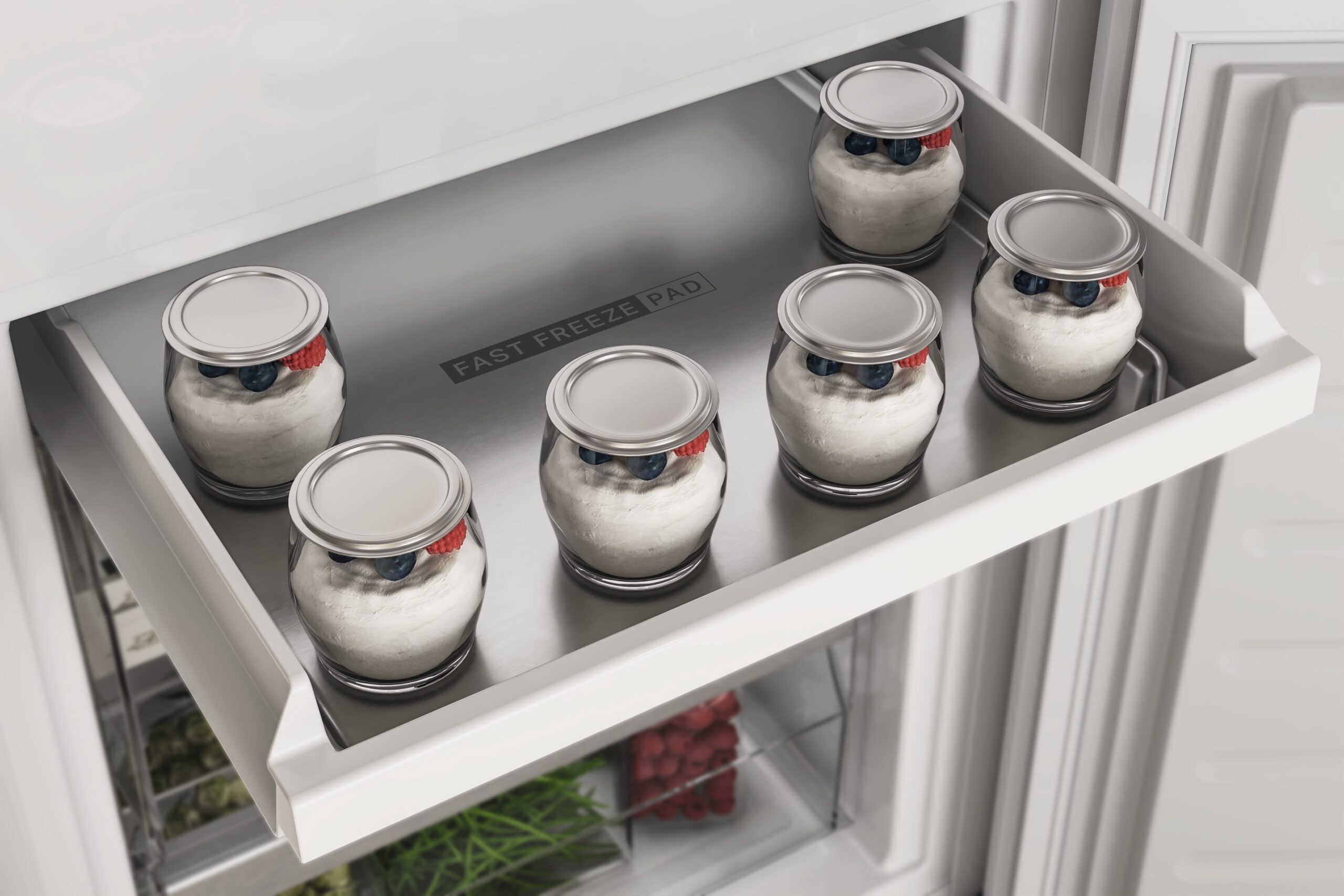 Fast Freeze alumiiniumist alus sügavkülmosas aitab värskelt hoiustatud toidu kiirelt maha jahutada, kuni 30% kiiremini kui tavalisel riiulil.