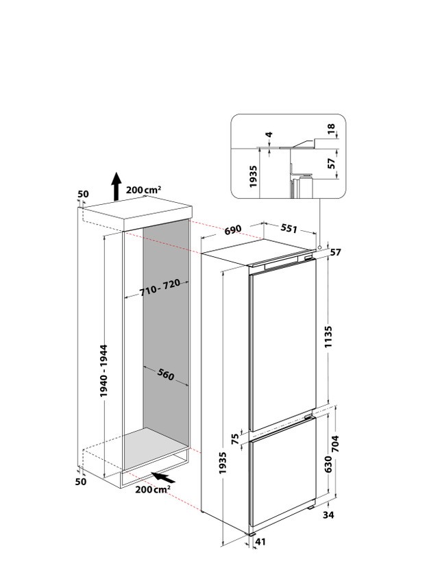 70 cm laiune integreeritav külmik Whirlpool mahutab oluliselt rohkem kui standardlaiusega 55 cm mudel.