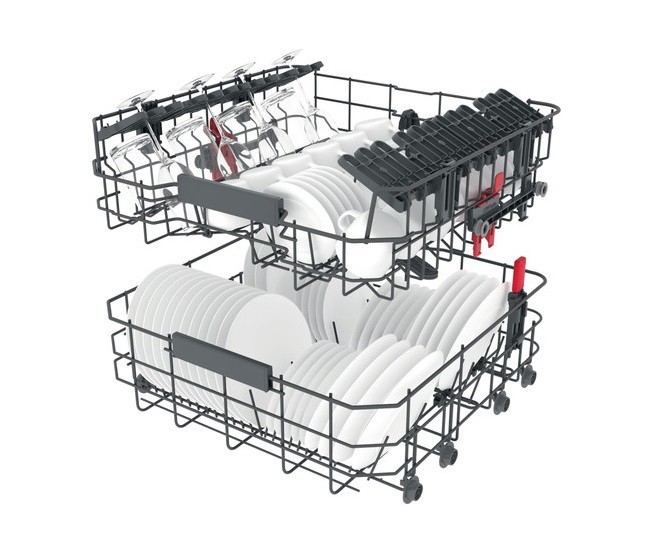 Modulaarne kolmas rest sobib ideaalselt söögiriistadele ja sellel on liugmoodulid, mis võimaldavad ülemisse resti lihtsalt ka kõrgemaid esemeid panna.