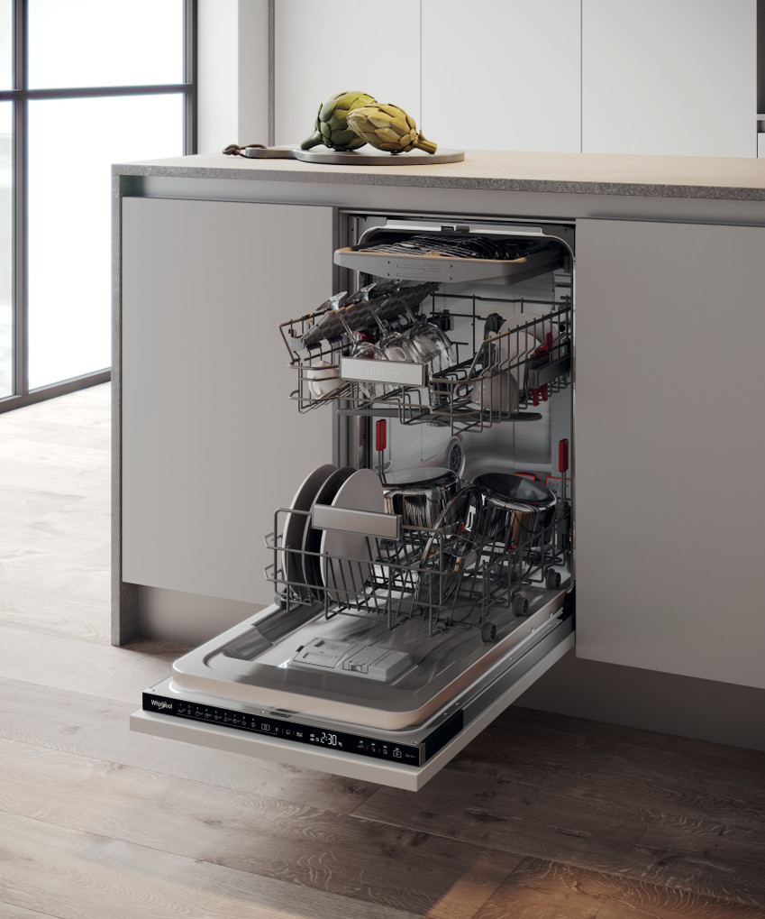 Keskkonnasõbralik tõhusus. Uuenduslik tehnoloogia tagab, et see Whirlpooli nõudepesumasin kindlustab teile laitmatu tulemuse vaid 9-liitrise veekuluga tsükli kohta.