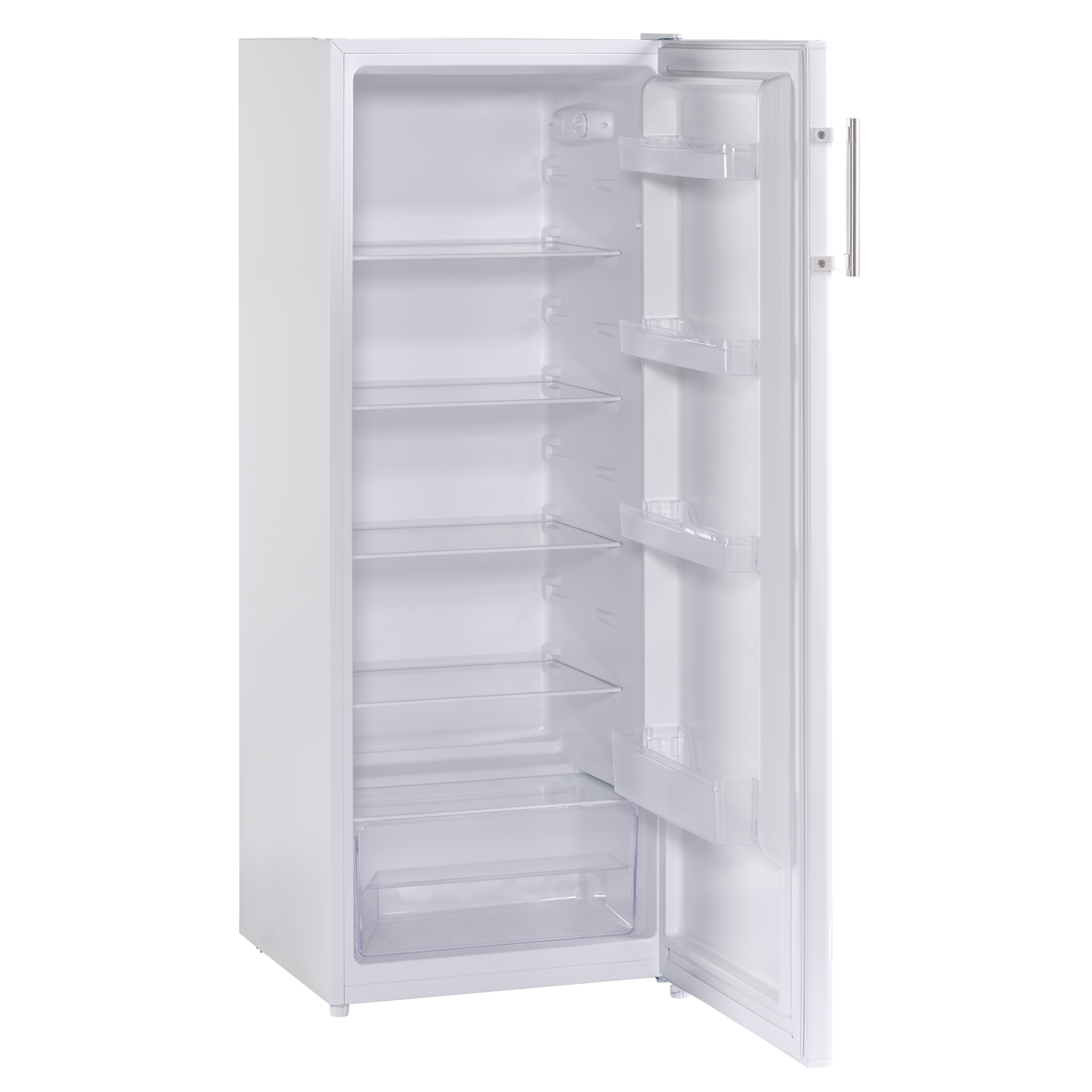 Jahekülmiku osas 5 reguleeritava kõrgusega turvaklaasist riiulit, 5 ukseriiulit ja 2 mahukat puu- ning juurviljakasti.