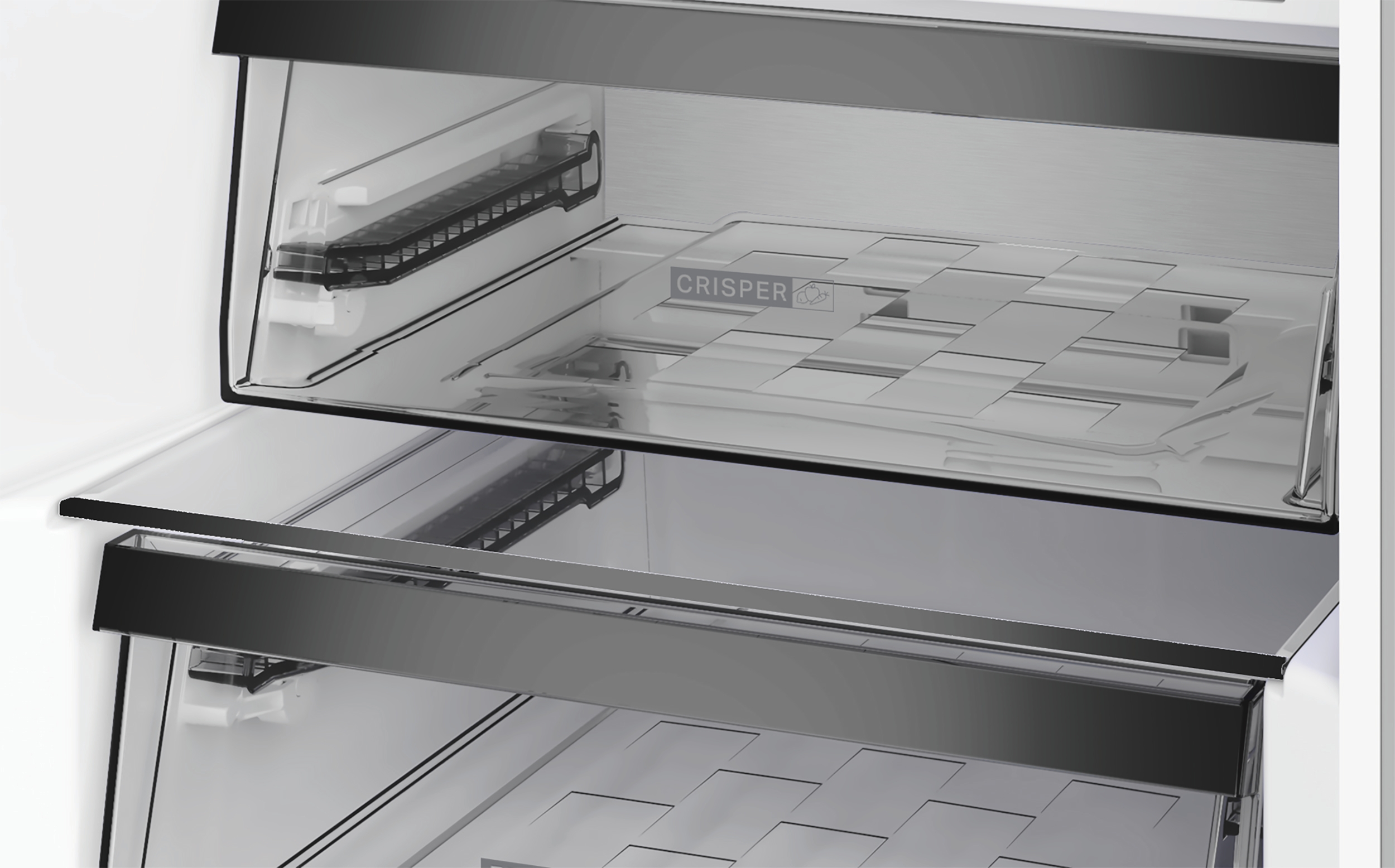Crisper sahtel on ideaalne värske puu- ja juurviljade hoiustamiseks tänu optimaalsele niiskustasemele.