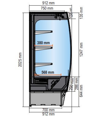3 reguleeritava kõrgusega riiulit, varustatud hinnahoidikuga.