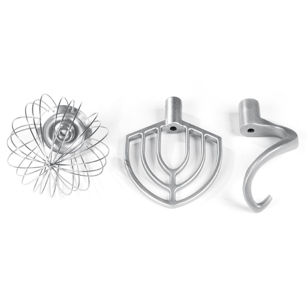 Komplektis: vispel, segamismõla ja taignakonks.